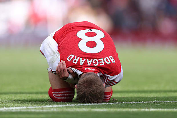 布卡约·萨卡和马丁·厄德高本赛季都缺席了比赛。诺尼·马杜埃克是最新的伤病担忧,而加布里埃尔·热苏斯继续他的长期康复。