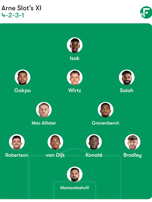 ตัวจริงคาดการณ์ของลิเวอร์พูล พบ เชลซี (4-2-3-1): มามาร์ดาชวิลี; แบรดลีย์, โกนาเต้, ฟาน ไดค์, โรเบิร์ตสัน; กราเวนแบร์ค, แม็ค อัลลิสเตอร์; ซาลาห์, เวิร์ทซ์, กัคโป; อิซัค