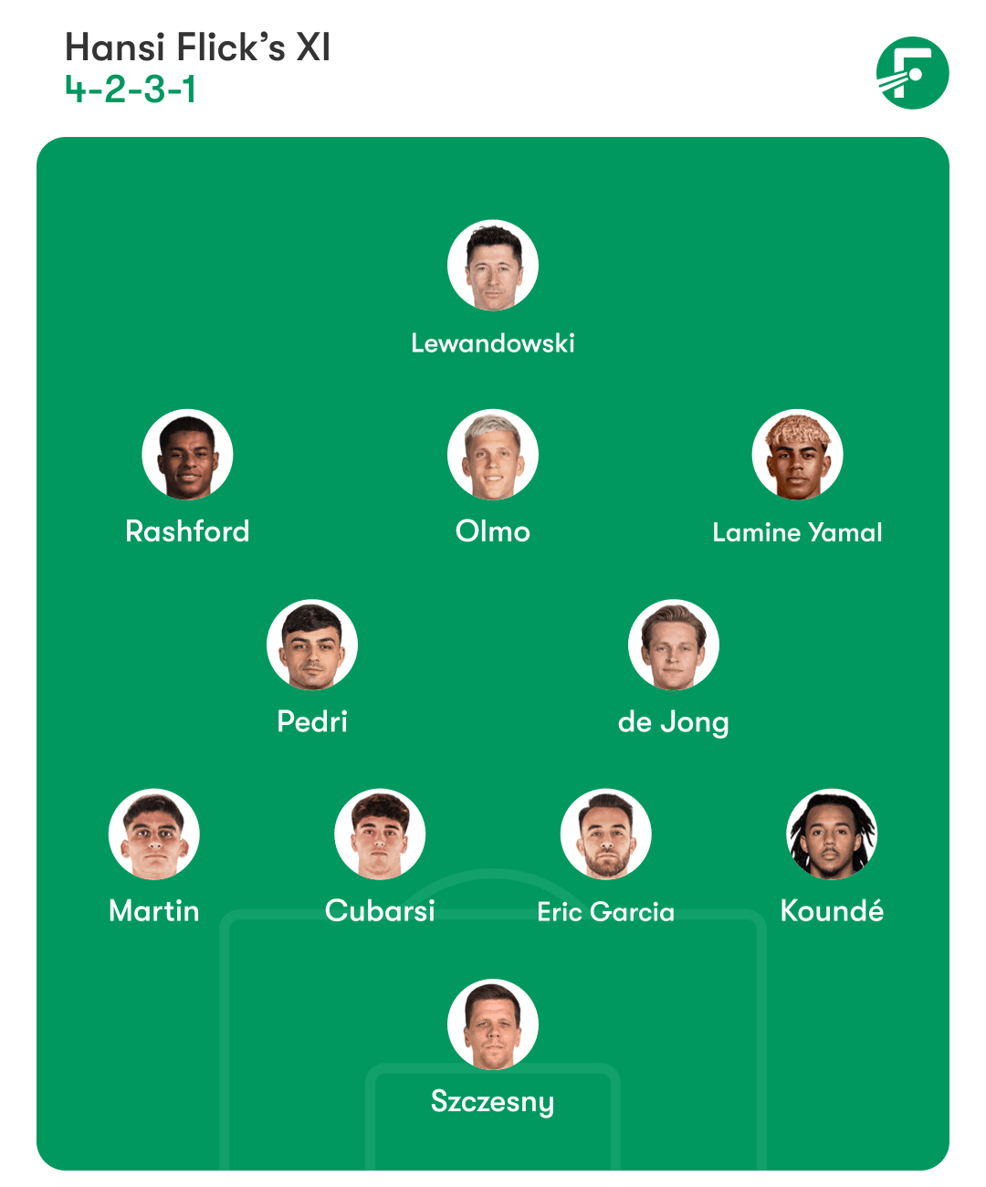 ปีกขวา: ลามีน ยามาล—หมายเลข 10 ของบาร์เซโลนากลับมาจากการบาดเจ็บที่ยาวนานหนึ่งเดือนและต้องใช้เวลาเพียงหกสิบวินาทีในการบันทึกแอสซิสต์ลูกที่ 3 ของฤดูกาล ผู้เข้าชิงบัลลงดอร์รอคอยอย่างใจจดใจจ่อที่จะแสดงให้เห็นว่าทำไมหลายคนถึงมองว่าเขาเป็นพรสวรรค์อันดับหนึ่งของโลกเมื่อเผชิญหน้ากับแชมป์ทวีป