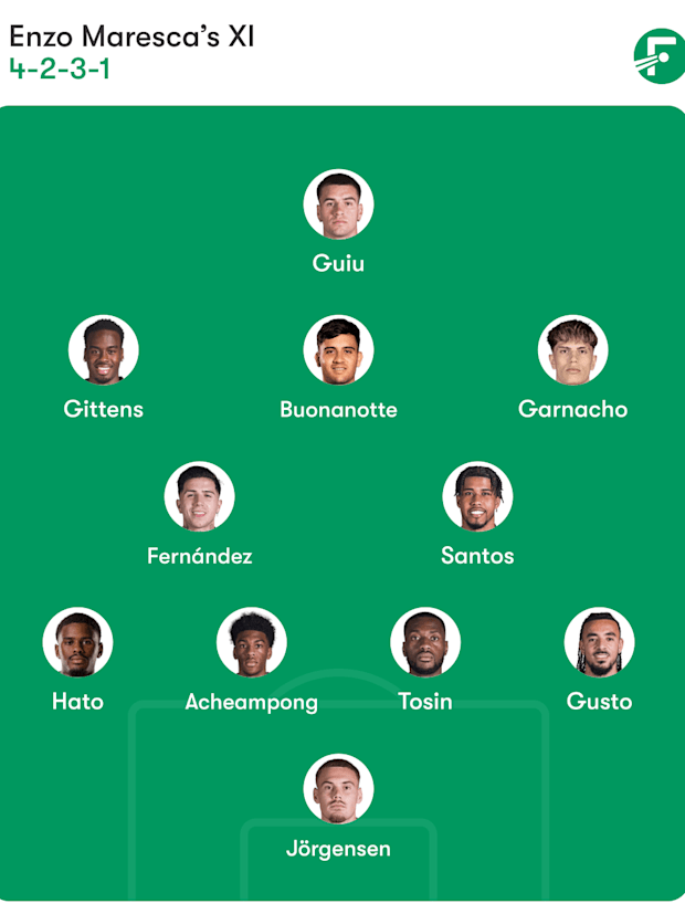 แอตแทคกิ้งมิดฟิลด์เดอร์: ฟาคุนโด้ บัวนานอตเต้—ไม่มีเหตุผลที่จะเสี่ยงกับสุขภาพของโคล พาล์เมอร์ ทำให้เกิดโอกาสสำหรับนักเตะยืมตัวอย่างบัวนานอตเต้ที่จะร่วมกับการ์นาโช่ในการลงสนามครั้งแรกให้กับสโมสร
