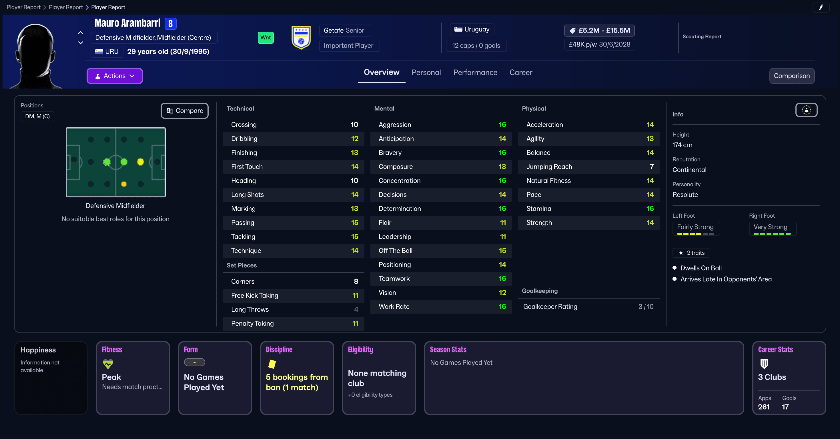 เช่นเดียวกับอารัมบาร์รี เขาเป็นหนึ่งในไม่กี่คนในกลุ่มนี้ที่เหมาะสำหรับการแข่งขันระดับท็อป การแทคเกิ้ล 16 ของเขาทำให้มั่นใจได้ว่าจะผสานเข้ากับฐานกองกลางของคุณได้อย่างราบรื่น