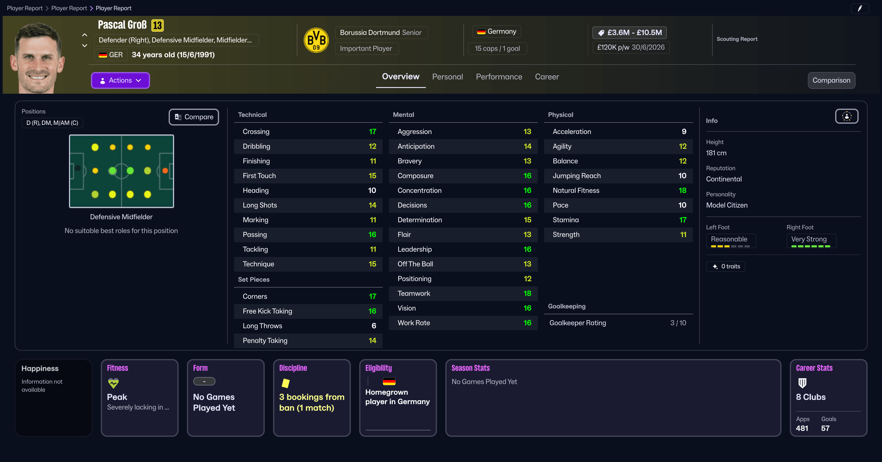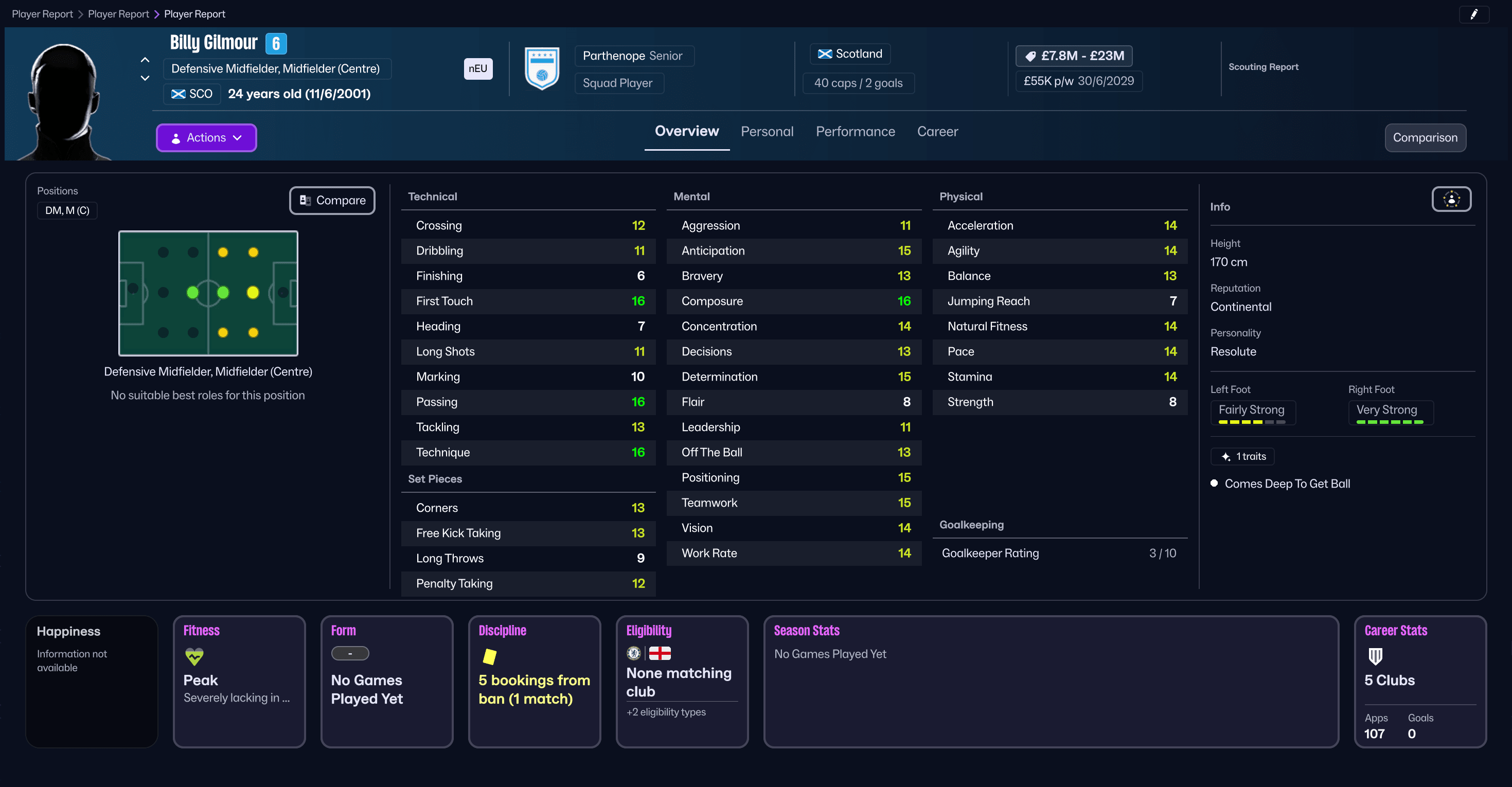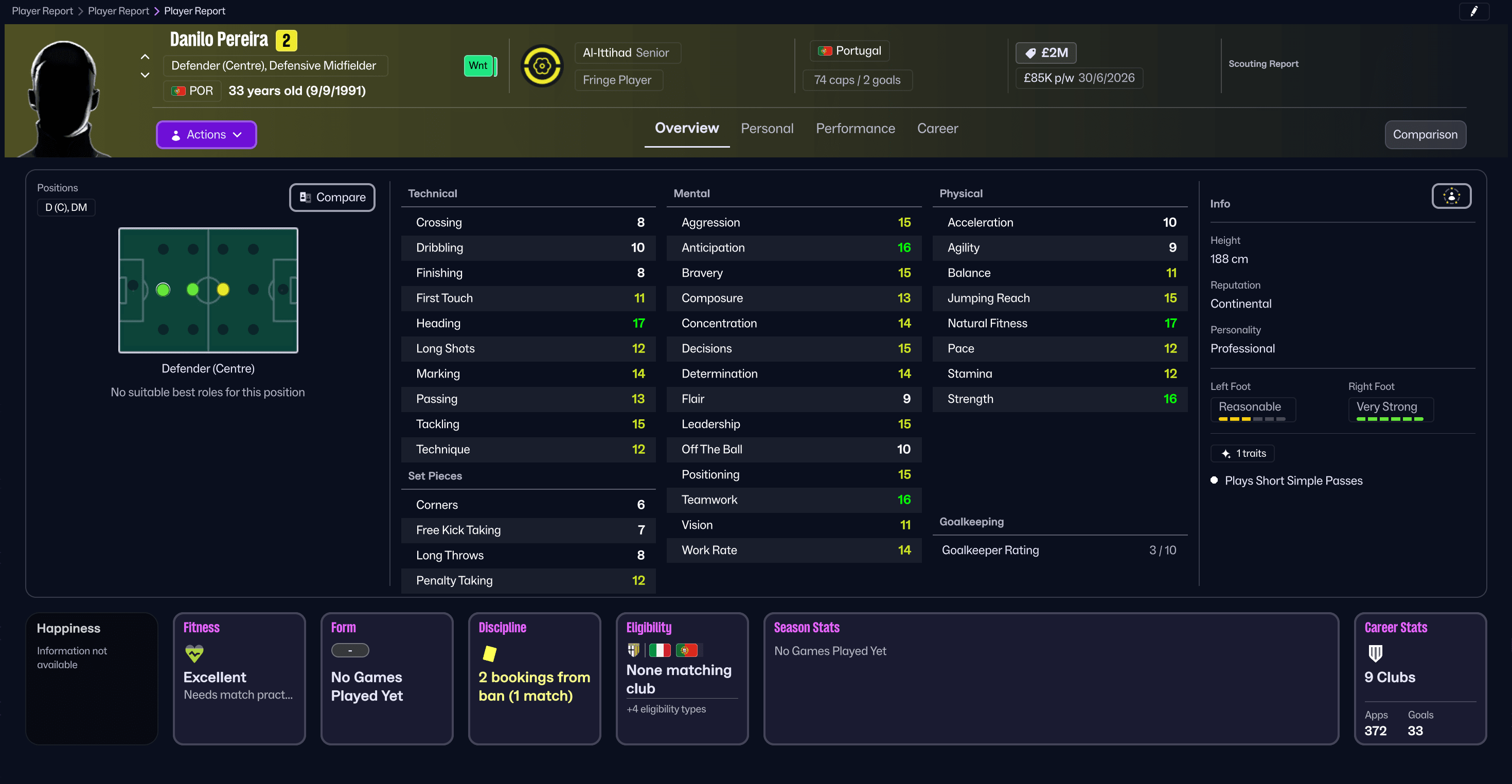 ความสามารถในการส่งบอล 16 ของเขาทำให้เขาเป็นตัวเลือกที่เน้นการโจมตีมากกว่าการป้องกันล้วนๆ เหมาะสำหรับหากคุณต้องการคนที่ควบคุมจังหวะจากตำแหน่งลึก